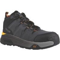 The Hyperfort S1P safety hikers from Regatta Professional are sure to keep feet happy and protected. The men's work boots come with a composite toe cap for safety and are finished with a metal-free structure and padded collar and tongue for the ultimate comfort. Safety Rating: S1PL FO SR 200J Composite Toe Cap Composite Penetration-Resistant Midsole Standard Fit Fuel Oil-Resistant Sole Not Tested for Sole Heat Resistance Waterproof Anti-Static Sole Shock-Absorbing Sole - Manufacturers part numbers: UTRG9255_14|525JW