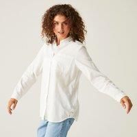 The Primevere women's cotton shirt from Regatta will style up your wardrobe. It's made with a cotton fabric for a comfy finish. The ladies long-sleeved shirt is finished with a trendy shaped hem. It's the perfect beach layer. | Regatta Women's 'Primevere' Shirt in White | Size: 10 - Manufacturers part number: UTRG9863_11