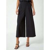 Roman Wide Leg Cropped Culottes - Black For a comfortable but chic look, these wide leg culottes are perfect. Cut from a smooth, scuba crepe fabric these trousers offer a flattering stretch, combined with an elasticated waistband these are as easy to wear as they are elegant. Additional pleat detail at the centre top of the legs ensure they fall delicately and neatly to the 3/4 length finish. Perfect for smart occasion and a suitable staple for work, pair with printed blouses and heels for a sophisticat... - Manufacturers part number: W7R9D