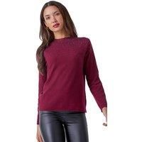 Sparkly High Neck Knit Jumper from Roman. Elevate your evening style with this fun multi-coloured diamante jumper. Featuring a cosy funnel neckline and long sleeves, this chic knitted sweater is embellished with multicoloured diamantes for added sparkle that's perfect for the party season. Pair this feminine style with slim black jeans and high heels for a glamourous night out. | Roman Women's Sparkly High Neck Knit Jumper in Dark Red | Size: 12 - Manufacturers part number: Roman_5063026072401
