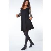 Contrast Leopard Print Swing Dress from Roman. This 2 in 1 swing dress style uses the effect of a contrasting animal print sleeve and shirt collar, making it perfect for the transitional season. It's feminine v neckline showcases the printed collar perfectly and the full length sleeves are adorned in a fierce animal print, finished with smart shirt cuffs. Pair with tights and boots for a cute every day look thats perfect for work or play! - Manufacturers part numbers: Roman_5063026160566|143365p