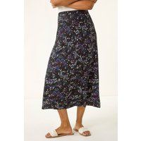Ditsy Floral Stretch Elastic Waist Midi Skirt from Roman. Update your Autumn prints with this delicate, ditsy print midi skirt. Cut from a stretch jersey fabric this piece is comfy and stylish. An elasticated waistband ensure this pull on style is quick and easy to style. Vertical panels create soft shape in the midi length skirt. Pair with chunky knitwear and boots for a casual but cool, Autumn look! | Roman Women's Ditsy Floral Stretch Elastic Waist Midi Skirt in Black | Size: 10 - Manufacturers part number: Roman_5063026257723