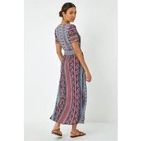 Floral Print Fit and Flare Maxi Dress from Roman. Warm weather touches, embraces this piece in every single way. Created with a soft v-neckline, short sleeves and a shirred elasticated waist. This fit and flare piece finishes at a nice mid-axi length. Complete with a button down centre front a flattering piece that is ideal for the warmer weather. | Roman Women's Floral Print Fit & Flare Maxi Dress in Purple | Size: 18 - Manufacturers part numbers: Roman_5063026320427|141427p