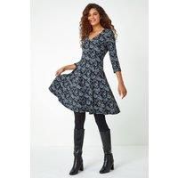 Rose Print Cotton Blend Stretch Dress from Roman. Our floral fit and flare dress is the epitome of timeless elegance for Autumn. This knee-length beauty features a classic v-neckline and flattering 3/4 length sleeves, making it perfect for any occasion. Designed for convenience, it's pull-on-overhead body effortlessly combines comfort with style. It is crafted from a stretch jersey, textured material with a soft cotton blend and jacquard finish. Pair with your favourite boots to create a stunning every... - Manufacturers part number: Roman_5063026601045