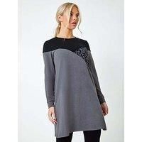 Roman Petite Animal Colour Block Knit Dress - Dark Grey Keep cosy this Autumn Winter with a cute jumper dress. Cut from a stretch knit material for maximum warmth, this style features long sleeves with cuffs and a classic round neckline. The soft feel fabric is adorned in a statement colour block design with an animal print panel to add interest to your casual looks. It has an easy-to-pull-on silhouette with a shift shape for a flattering finish: just add tights and boots for that off-duty weekend outfi...