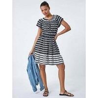Roman Zig Zag Border Print Shirred Dress Effortlessly chic and perfect for warmer days, this zig zag border print dress is an on-trend addition to your Summer wardrobe. Crafted from a light woven material, this day dress features a keyhole neckline with a tie detail as well as comfortable short sleeves. The stretch shirred waist cinches you in, creating a flattering fit and flare shape. Easy to pull on, this style is topped off with a frill neckline, button detail and ruched waist. Pair this casual cool... - Manufacturers part number: WGYYO
