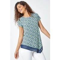 Floral Asymmetric Chiffon Hem Tunic Top from Roman. You know its Summertime when the ditsy florals come out to play- here at Roman, weve got you covered! This eye-catching top is cut from a comfortable stretch jersey fabric which features a textured floral print throughout. Its crafted into a simple silhouette with a modest round neckline and short sleeves but makes a statement with a playful asymmetrical chiffon hemline. Pair with cropped trousers and sandals for a stunning Summer style. | Roman Women's Floral Asymmetric Chiffon Hem Tunic Top in Green | Size: 10 - Manufacturers part number: Roman_5063026688206