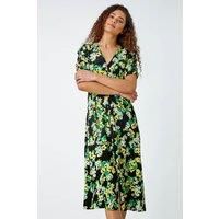 Ditsy Floral Ruched Sleeve Midi Dress from Roman. Adorned in a fun floral print, this woven midi dress is perfect for the warmer months. Designed with a feminine v neckline this piece features short, ruched sleeves and sweet button detail. A thick waistband creates flattering pleats throughout the dress. Designed to pull on overhead, this dress falls in a fit and flare style to its midi length hem. Pair with heeled wedges to complete the look! - Manufacturers part numbers: Roman_5063026706801|143420p