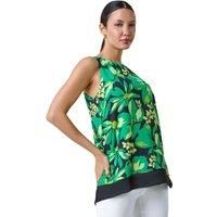 Floral Print V-Neck Double Layer Vest Top from Roman. Elevate your Summer wardrobe with this chic floral print vest top. Embrace the warm weather in style with this sleeveless style, featuring a split detail at the back and a double-layered hem for added flair. The flattering floaty fit and bold floral print make it a perfect Summer staple. Designed with a round neckline and keyhole button back, this light woven top combines style and comfort for any occasion. Pair it with denim jeans and sandals for easy, everyday styling. | Roman Women's Floral Print V-Neck Double Layer Vest Top in Green | Size: 12 - Manufacturers part numbers: Roman_5063026777139|201159p