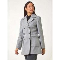 Double Breasted Longline Coat from Roman. No coat collection is complete without a smart, longline style. This double-breasted coat has a smart revere collar and sophisticated full-length sleeves with luxurious folded cuffs. It features practical front flap pockets and striking metallic button fastenings. Designed in a warm longline shape, providing extra coverage for the colder months ahead, this military style coat is cut from a luxurious woven fabric. Perfect for your every day, this coat is ideal for work but equally as stylish over your formal wear for the festive season ahead! | Roman Women's Double Breasted Longline Coat in Charcoal | Size: 14 - Manufacturers part number: Roman_5063026778525