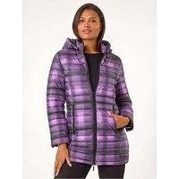 Check Print Quilted Puffer Coat from Roman. Stay warm this Autumn Winter in our check padded coat. The classic check print adds a touch of charm to this quilted puffer coat, made from a comfortable lightweight padded fabric. Featuring practical front pockets and full-length sleeves, this coat is both functional and fashionable. Complete your outfit by pairing it with jeggings and ankle boots for a trendy fall look | Roman Women's Check Print Quilted Puffer Coat in Purple | Size: 16