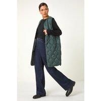 Roman Originals Quilted Collarless Buttoned Gilet for Women UK - Ladies Everyday Autumn Winter Funnel Neckline Comfy Soft Evening Vacation Work Party Night Out - Forest Green - Size 10