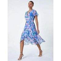Roman Floral Frill Detail Wrap Dress Step into the new season is style with this feminine floral print wrap dress with floaty angel sleeves. Featuring a mock wrap detail to the front giving a classic v-neckline and made from a lightweight material, this dress finishes nicely at knee-length with a concealed zip to the back. Add some sophistication to your garden party looks with a clutch and a cardigan or dress it up with heels and a fascinator for a Wedding or day at the races this Summer. Material Cont... - Manufacturers part numbers: Roman_5063026785264|141131p