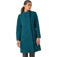 Tailored Funnel Neck Pocket Detail Coat from Roman. Turn heads this Autumn Winter season in our effortless tailored funnel neck coat. Crafted from a luxurious double crepe fabric, this coat features a flattering funnel neckline and side vertical welt pockets for added practicality. Fully lined for comfort and warmth, this coat is the perfect outerwear staple. Layer it with your favourite knitwear and jeans for a sophisticated look that will keep you cosy in style all season long! | Roman Women's Tailored Funnel Neck Pocket Detail Coat in Teal | Size: 20 - Manufacturers part numbers: 120314p|Roman_5063026820705
