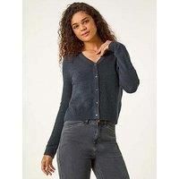 Roman Shimmer V-neck Ribbed Cardigan - Grey Add a touch of sparkle to your Autumn Winter wardrobe with our shimmer edge detail cardigan. Designed with long sleeves to keep you warm and button through details, this cosy cardigan is the perfect layering piece for the upcoming season. The soft hand touch ensures maximum comfort, making it an essential addition to your everyday outfit. Style it with a classic t-shirt and jeans for a trendy day look! Material Content: 41% Polyamide, 40% Polyester, 9% Wool, 7...