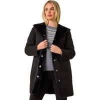 Petite Faux Sheepskin Reversable Hooded Coat from Roman. Wrap up warm in style this Autumn and Winter with this versatile hooded coat. Crafted from a reversible faux sheepskin fabric, this cosy coat features a practical hood, angled side pockets, and a secure fastening down the centre front. The long sleeves provide extra warmth while the relaxed fit ensures comfort all day long. Pair with your favourite knitwear and jeans for a chic and cosy look that will keep you stylish in the colder months. - Manufacturers part numbers: 120329p|Roman_5063026841854