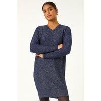 Sequin Detail Stretch Jumper Dress from Roman. Upgrade your everyday style with this sequin detail jumper dress. Cut from a comfortable and cosy knitted fabric, this dress features a feminine v-neckline and full-length sleeves. A ribbed hem and cuffs ensure a cosy and secure fit, while the sequin detail elevates the piece further. Designed to pull on overhead this jumper dress finishes at a modest knee-length. Pair with tights, boots and a gilet for everyday Autumn style! - Manufacturers part number: Roman_5063026850849