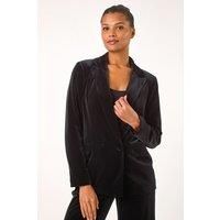 Velvet Double Breasted Blazer from Roman. Elevate your look with this luxurious velvet stretch jacket, perfect for the Autumn Winter season. Crafted in a blazer style with a smart collar and rever neckline for a sophisticated touch, this jacket features long sleeves and front flap pockets. Lined to keep you warm, it exudes elegance and style with its button detail. Ideal for any party or special occasion, pair with matching velvet pants and heeled boots for the ultimate look! - Manufacturers part number: Roman_5063026868400