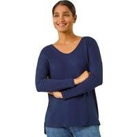 V-Neck Tunic Stretch Top from Roman. Stay trendy and snug in our versatile long-sleeve tunic top. It boasts a feminine v-neckline and plain design, perfect for effortless styling. With a comfortable full-length sleeve and a loose fit, this tunic features drop shoulders for added flair. Cut from a soft jersey stretch fabric, this piece is easy to wear and perfect for the Autumn Winter seasons. Pair with a casual jacket and boots for a cosy Autumn look! | Roman Women's V-Neck Tunic Stretch Top in Navy | Size: 10 - Manufacturers part numbers: Roman_5063026890210|193270p