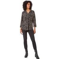 Abstract Print Stretch Jersey Shirt from Roman. Bring prints into the cooler seasons with a darker alternative. Designed with a button notch neckline and 3/4 length sleeves, this smart top is the perfect choice to add some prints into your smart casual wardrobe. Detailed with button tabs on the sleeves this Autumn Winter staple is so easy to pull on and go. Wear this piece with a pair of smart trousers and matching blazer for a glitzy office look. | Roman Women's Abstract Print Stretch Jersey Shirt in Black | Size: 20 - Manufacturers part numbers: Roman_5063026891262|100242p