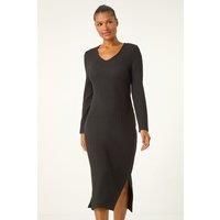 Wave Textured V-Neck Stretch Midi Dress from Roman. Get cosy and trendy with our wave textured midi dress. Perfect for the Autumn Winter season, this trendy dress features a flattering v-neckline and long cuff sleeves. Crafted from stretchy jersey fabric with textured wave details, it falls in an a-line shape at a modest midi length. Complete your fall look by pairing it with a denim jacket and boots for effortless style! | Roman Women's Wave Textured V-Neck Stretch Midi Dress in Black | Size: 16 - Manufacturers part number: Roman_5063026904306