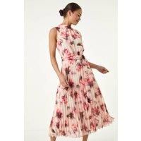 Petite Floral Pleated Halter Neck Midi Dress from Roman. Unleash your effortless style in this stunning printed pleated dress, perfect for the Spring/Summer season. The halter neck design and pleated skirt add a touch of elegance, while the comfortable woven fabric ensures all-day comfort. With a flattering tie waist and a midi length, this dress is not only chic but also practical. Fully lined for a premium feel, this dress is ready to take you from day to night with just a change of shoes and a blazer for a sophisticated evening look! | Roman Women's Petite Floral Pleated Halter Neck Midi Dress in Red | Size: 12 - Manufacturers part number: Roman_5063026905372