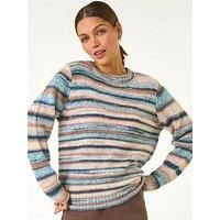 Roman Wool Blend Striped Stretch Jumper - Denim Transition into the new season with some cosy textures and timeless silhouettes. This soft, fluffy jumper is cut from a cosy wool blend fabric and features a striking stripe detail. It has a flattering ribbed hemline and crew neck. Pair this jumper with mom jeans and boots for an off-duty look, or layer over leggings for comfy stay at home style! Material Content: 58% Acrylic, 31% Polyamide, 11% Wool Washing Instructions: Machine Washable - Manufacturers part number: Roman_5063026907826