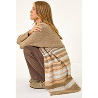 Stripe Print Knit Longline Cardigan from Roman. Keep comfortable as the Winter approaches with our longline striped cardigan! Crafted from a soft, knit fabric with a shawl collar, this cardigan features front patch pockets, long sleeves to keep you warm, and trendy fringe hem detail. Wear with wide-leg trousers and your favourite knit for a trendy daytime look! - Manufacturers part numbers: Roman_5063026909554|160553p