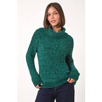 Cowl Neck Chenille Knit Jumper from Roman. Wrap up this Autumn and Winter in this luxurious cowl neck chenille jumper. Crafted from a lovely soft knit, this jumper features a stylish cowl neckline and flattering raglan sleeves. The long sleeves add extra warmth and elegance, making it the perfect cosy piece for the colder months. Pair with your favourite jeans and ankle boots for a chic and comfortable everyday look that will keep you warm and stylish all season long! | Roman Women's Cowl Neck Chenille Knit Jumper in Green | Size: 14 - Manufacturers part numbers: Roman_5063026923291|161588p