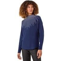 Moonburst Embellished Detail Jumper from Roman. Make a stunning statement with the Moonburst Embellish knitted jumper this Winter. The unique moonburst neck detail adds a touch of sparkle to this cosy piece, perfect for chilly days. Complete with long sleeves, this jumper is as stylish as it is warm. Pair with your favourite jeans and heeled boots for a chic and effortless look that will turn heads wherever you go! | Roman Women's Moonburst Embellished Detail Jumper in Midnight | Size: Small - Manufacturers part number: Roman_5063026937304