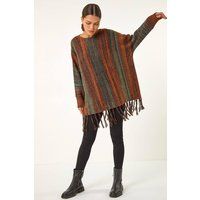 Ombre Vertical Stripe Fringe Jumper from Roman. Add a touch of style to your Autumn/Winter wardrobe with this chic ombre stripe fringe jumper. The vertical stripe design and fun fringe detail make this jumper a unique and eye-catching piece. Featuring long sleeves and a classic crew neck, this jumper is perfect for adding a pop of colour to your outfits. Pair with jeggings and ankle boots for a stylish and cosy look that will keep you warm all season long! | Roman Women's Ombre Vertical Stripe Fringe Jumper in Orange | Size: 12 - Manufacturers part number: Roman_5063026951126