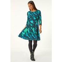 Petite Abstract Print Seam Detail Dress from Roman. Make a statement this Autumn Winter with our stylish Petite abstract print dress. The flattering round neckline and long sleeves keep you warm while the contrast seam detail adds a unique touch. Cut from a comfortable stretch jersey fabric with an abstract print for effortless style. The fit and flare silhouette enhances your shape beautifully, making this dress a must-have for the season. Pair with winter boots, tights, and a coat, or layer with a denim jacket for a perfect outfit | Roman Women's Petite Abstract Print Seam Detail Dress in Turquoise | Size: 14 - Manufacturers part number: Roman_5063026991979
