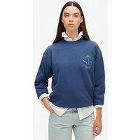 Superdry Luxe Metallic Loose Sweatshirt Size & Fit True to size - order your usual size Relaxed fit Available in sizes 8 - 16 Model is 5'10"" and is wearing a UK10 Details Luxe Metallic Loose Sweatshirt by Superdry Blue Crafted from a sumptuously soft fabric Crew neck Dropped long sleeves Cropped deep cuff and hemline Lightly brushed lining Superdry contrast stitching and printed text on to the top of the sweatshirt Superdry tag embroidered on the side Material & Care Material Content: Body-cotton 10...