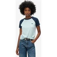 Superdry Essential Logo Retro T-Shirt Size & Fit True to size - order your usual size Slim fit Available in sizes 8-16 Details Essential Logo Retro T-Shirt by Superdry Navy Raglan design Crew neck Short sleeves Printed Superdry logo Material & Care Material Content: Body -Organic Cotton 100% Washing Instructions: Machine Washable