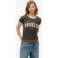 Superdry Athletic Essential Ringer Fitted T-Shirt Size & Fit True to size - order your usual size Fitted fit Available in sizes 8 - 16 Details Athletic Essential Ringer Fitted T-Shirt by Superdry Grey Printed logo to chest Short sleeves Round neckline Tipping to collar and cuffs Material & Care Material Content: Body-cotton 100% - Manufacturers part number: 5566041