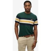 Superdry Essential 3 Stripe T-shirt Relaxed fit - the classic Superdry fit. Not too slim, not too loose, just right. Go for your normal size Ribbed contrasting crew neckline Embroidered text on the chest Signature tab on the sleeve Our Essentials Stripe T-Shirt has been crafted with a delicately embroidered text on the chest and jersey material so it's super airy and stylish, just what's needed for the coming season. Material & Care Material Content: Body-cotton 100% - Manufacturers part numbers: M1012209A|WPTQ1