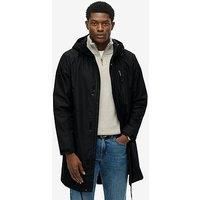 Superdry Hooded Tech Fishtail Parka Oversized fit - exaggerated and super relaxed, let your style flow. Durable water repellency - This fabric has been coated with an advanced water-resistant finish. Hooded with bungee adjustable drawcord. Zip and popper fastening with three external pockets. Hook & loop adjustable cuffs with a fishtail hemline . Embroidered text on the chest and back with a signature tab on the sleeve. The Hooded Tech Fishtail Parka has been designed to be the perfect understated addit...