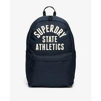 Superdry Athletic Montana Backpack Size & Fit H 45cm x W 29.0cm x D 13.0cm Details Athletic Montana Backpack by Superdry Navy Top grab handle Main zipped compartment Zipped lower compartment Two side pockets Padded and ventilated back panel Adjustable shoulder straps Internal laptop sleeve Zipper inner compartment Printed Superdry logo Superdry logo patch on shoulder strap Material & Care Material Content: 100% POLYESTER Washing Instructions: Wipe Clean - Manufacturers part number: W9110429A-98T-OS