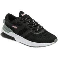 Up your exercise game with Atomics 2, a Gola training sneaker that incorporates a two-piece rubber outsole tread containing 5% recycled content. A pull loop tag can be found on the heel counter to make getting this trainer on and off effortlessly. The upper of this trainer is made of engineered mesh that is breathable and uses 100% recycled polyester yarn. | Gola Women's 'Atomics 2' Mesh Running Trainers in Black | Size: 4 - Manufacturers part number: GLA030BK