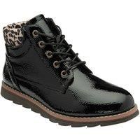 Elements from the hiker boot trend are evident on the Lotus Lexis lace-up ankle boot. This glossy patent boot encompasses an on-trend leopard printed ankle collar, metal eyelets and a serrated sole unit that gives it a contemporary twist. | Lotus Women's 'Lexis' Patent Flat Ankle Boots in Black | Size: 7