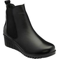 Redefining the classic Chelsea boot, is the 'Dresden' style from Lotus. This understated boot is exceptionally versatile and will pair well with an abundance of looks. As well as a premium leather upper and insock, this womens round toe ankle boot boasts traditional elasticated side panels, a pull heel tab and a wearable 4.5cm wedge heel.. | Lotus Women's Black Leather 'Dresden' Wedge Ankle Boots | Size: 5