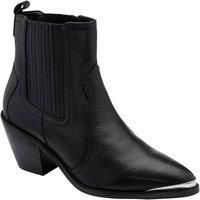 Elevate your outfit with the 'Cann' gorgeous leather ankle boots from Ravel. With a 6.5cm heel, these cowboy-influenced boots have a metallic toe piece that catches the light perfectly. Stylish and wearable with anything, these pull-on boots will fast become your go-to pair.