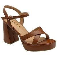 Ravel Farran Heeled Sandals - Tan Team Farran from Ravel with a LBD for an on-trend look. This women's heeled sandal features an adjustable ankle strap fastening, a crossover toe strap and a 10cm platform block heel. Heel Height: 4 Inch Material Content: Upper: Synthetic. Lining / Sock: Synthetic / Synthetic. Sole: Synthetic. Lining: Other Materials Sole: Other Materials Upper: Other Materials Womens Sandals Fitting: Standard Womens Sandals Style: Sandalised