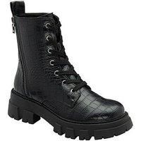 Ravel Blyth Ankle Boots - Black Own the spotlight in these black croc-effect ankle boots by Ravel, made to deliver standout style with serious edge. Featuring a textured synthetic upper, bold eyelet details, and a sleek side zip, Blyth sits on a chunky sole with a 5cm heel for added height and attitude. Whether you're heading to a festival or hitting the city, these women's Ravel boots are built to turn heads. Material Content: Upper: Other Materials. Lining / Sock: Other Materials / Other Materials. ... - Manufacturers part number: Ravel_5063075442736