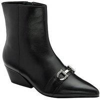 Ravel Aydon Ankle - Black Leather Introducing Aydon - the Ravel ankle boot that blends classic Western style with modern city flair. Crafted from black leather, this women's boot features a sleek pointed toe and a angled 5cm heel, capturing that iconic cowboy-inspired shape. Eye-catching horse bit detailing across the toe adds a touch of equestrian charm, while a hidden side zip ensures a streamlined look. Aydon is perfect for everything from casual denim to evening outings. Heel Height: up to 2.5 Inch...