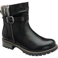 Step out in style with the chic and versatile Lotus 'Triana' ankle boots. Boasting a distinctive wrap-around buckle detail that adds a touch of equestrian-inspired elegance to the design. A knitted top collar provides a fashionable textural contrast, while the functional zip detailing enhances their urban edge. Set on a 3.5cm heel and finished with a robust cleated sole, these Lotus boots offer a subtle lift and are perfect for adding a fashionable yet practical touch to your everyday wardrobe. | Lotus Women's 'Triana' Zip-Up Ankle Boots in Black | Size: 6