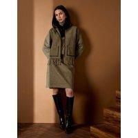 Channel understated sophistication with the Meredith Wool Blend Skirt. Cut in a flattering A-line silhouette, this tweed-inspired piece blends traditional tailoring with modern femininity. The soft olive herringbone fabric skims the body gently, offering both structure and movement. Designed to sit at the natural waist, it features a clean waistband, subtle panel seams, and a concealed back zip for a smooth, elegant fit. Pair the Meredith Skirt with a slim polo-neck or coordinate with the matching jacket for an effortlessly refined autumn ensemble. A timeless piece that transitions seamlessly from office to weekend. Details: Colour: Olive herringbone Fabric: Premium wool blend (52% Wool, 44% Polyester, 3% Acrylic, 1% Viscose) Lining: 97% Polyester, 3% Elastane Shape: A-line Length: Below-knee Fit: Tailored waist, gently flared hem Fastening: Concealed back zip Style note: Perfect with boots and a chunky knit for relaxed polish | GWD by GEORGE W. DAVIES Women's Meredith Wool Blend Skirt... - Manufacturers part number: GWD by GEORGE W. DAVIES_5063102968697