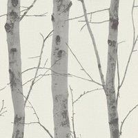 Design: Birch Trees, Gel Glitter, Striped. Design Repeat: 64cm. Easy Application, Offset Pattern Match, Paste the Wall. Finish: Matte, Textured. | Erismann Birch Trees Wallpaper in Cream