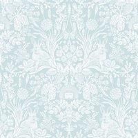 Material: Paper. Design: Butterflies, Damask, Hand-Painted, Hedgehog, Rabbit. Design Repeat: 53cm. Easy Application, Paste the Paper. Finish: Matte, Smooth. | World of Wallpaper Harlen Woodland Damask Wallpaper in Duck Egg Blue