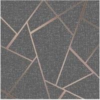 Material: Vinyl. Width: 52cm. Length: 10m. Design: Geometric, Glitter, Metallic. Design Repeat: 64cm. Finish: Matte, Textured. Offset Pattern Match, Paste the Paper. | Fine Dcor Quartz Fractal Textured Wallpaper in Dark Grey